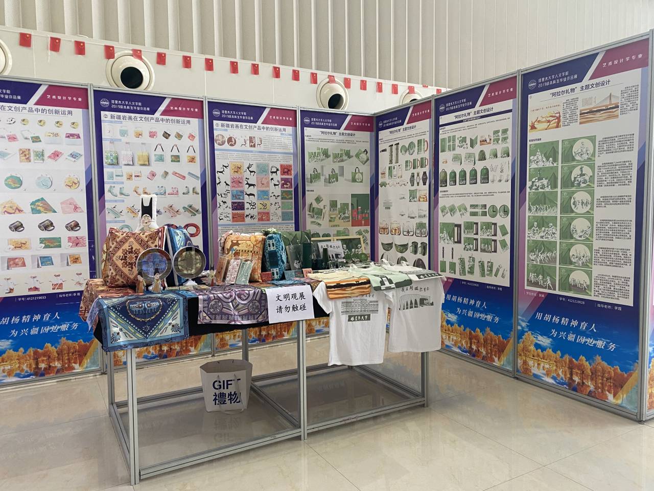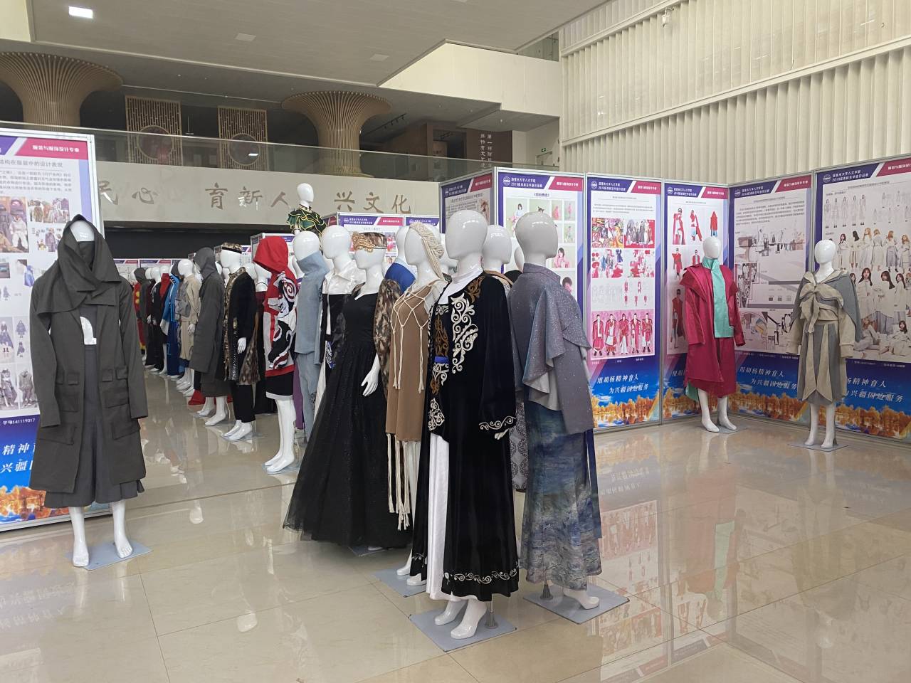据悉,此次静态展览共分为两个主题,艺术设计专业毕业作品展的主题为“疆——此刻·未来”,38名同学立足新疆区域文化特色,以乡村振兴为切入点进行相关文创设计、VI设计、建筑景观设计等120余件作品;服装与服饰设计专业毕业作品展的主题为“万物生长”,70位毕业生将四年累计设计作品近300余件,分7个系列进行展示,将从6月3日展览至6月11日在阿拉尔市文化(美术)馆,欢迎各位师生到馆观展。(文/赵会 摄/刘爱国 陈红)