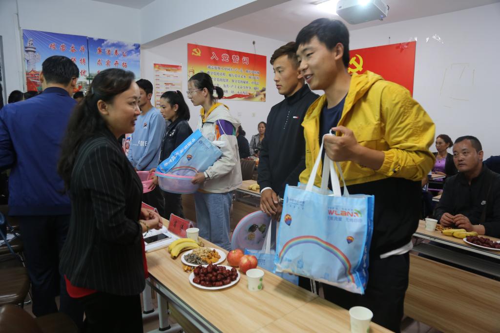 活动最后公司领导、老师向2019级的8名新生分发了新生大礼包,受到资助2019级新生们表示要用实际行动回报母校用功读书,以后也要去帮助更多需要帮助的人。