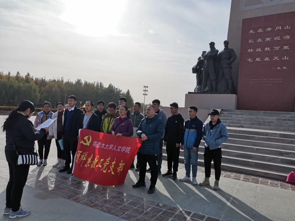 为厚植爱国主义情怀,服务社会、奉献社会。11月2日上午,预科系党支部结合“三进两联一交友”,预科系党员教师及交友员工在阿拉尔市政广场三五九旅纪念碑前共同开展“厚植爱国情怀,志愿服务社会”活动。