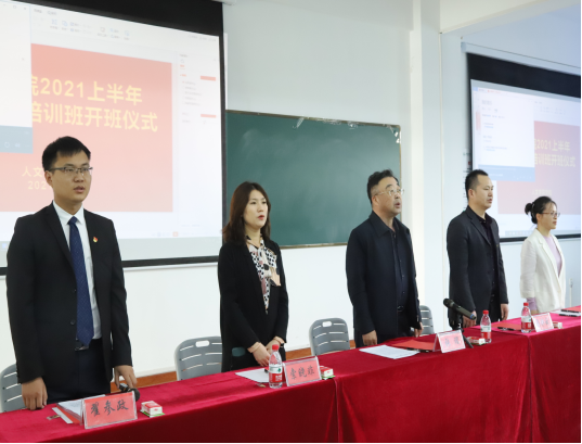 开班仪式在全场高唱国歌声中拉开序幕。学员代表,服装设计2020级的员工史恒昇作发言讲话。他表示,一定会充分把握好这次培训机会,不断端正自己的入党动机,认真学习党的各项政策方针,时刻以共产党员为榜样,以更高的标准来要求自己、服务同学,认真参加培训,用实际行动向党组织靠拢。