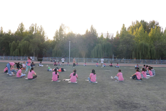 活动以夕阳和操场为背景拉开序幕,大家围成一个圈席地而坐。第一个环节是自我介绍,由赵芳芳主持。在此环节中,采取的是点名接力的方式进行。每一位同学以及到场的老师均到中间对自己的个人经历和家乡做了简要介绍。有的同学紧张,有的同学大方,有的同学侃侃而谈。通过短暂的介绍,大家对班里的同学和系里的老师有了大致的了解。