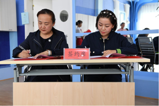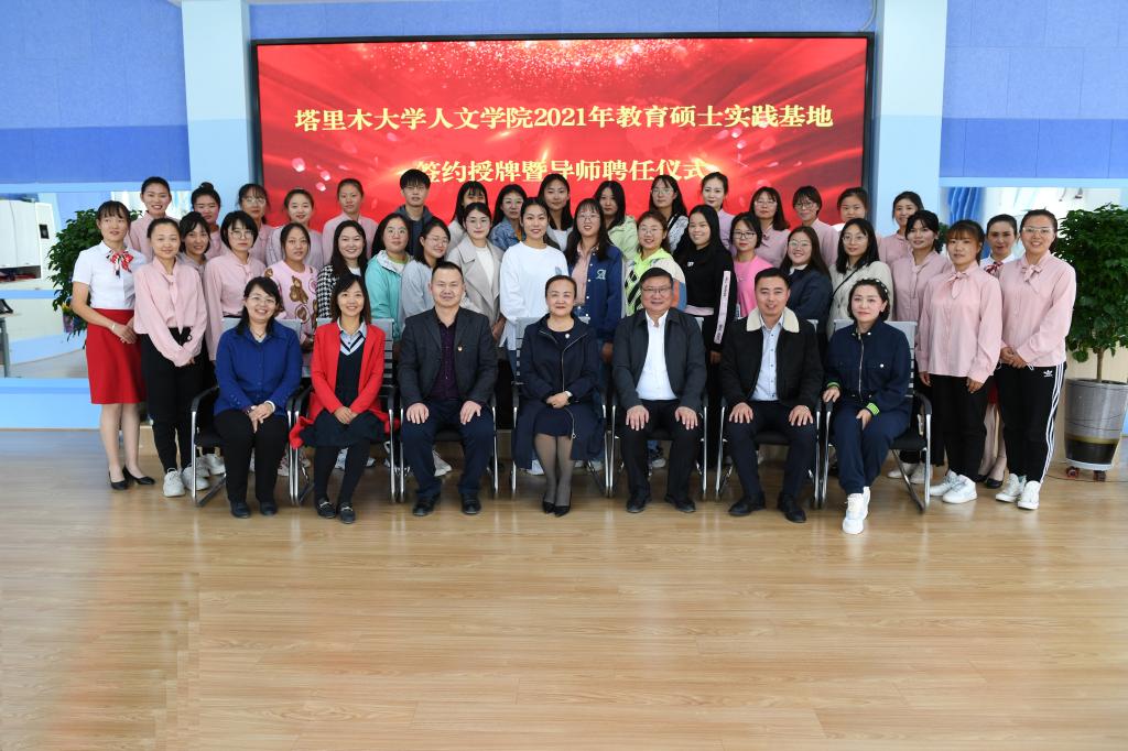 交流之后,肖涛教授与塔里木第二幼儿园负责人任绚丽同志签署了教育硕士实践基地合作协议,并邀请刘春阳同志共同揭牌。