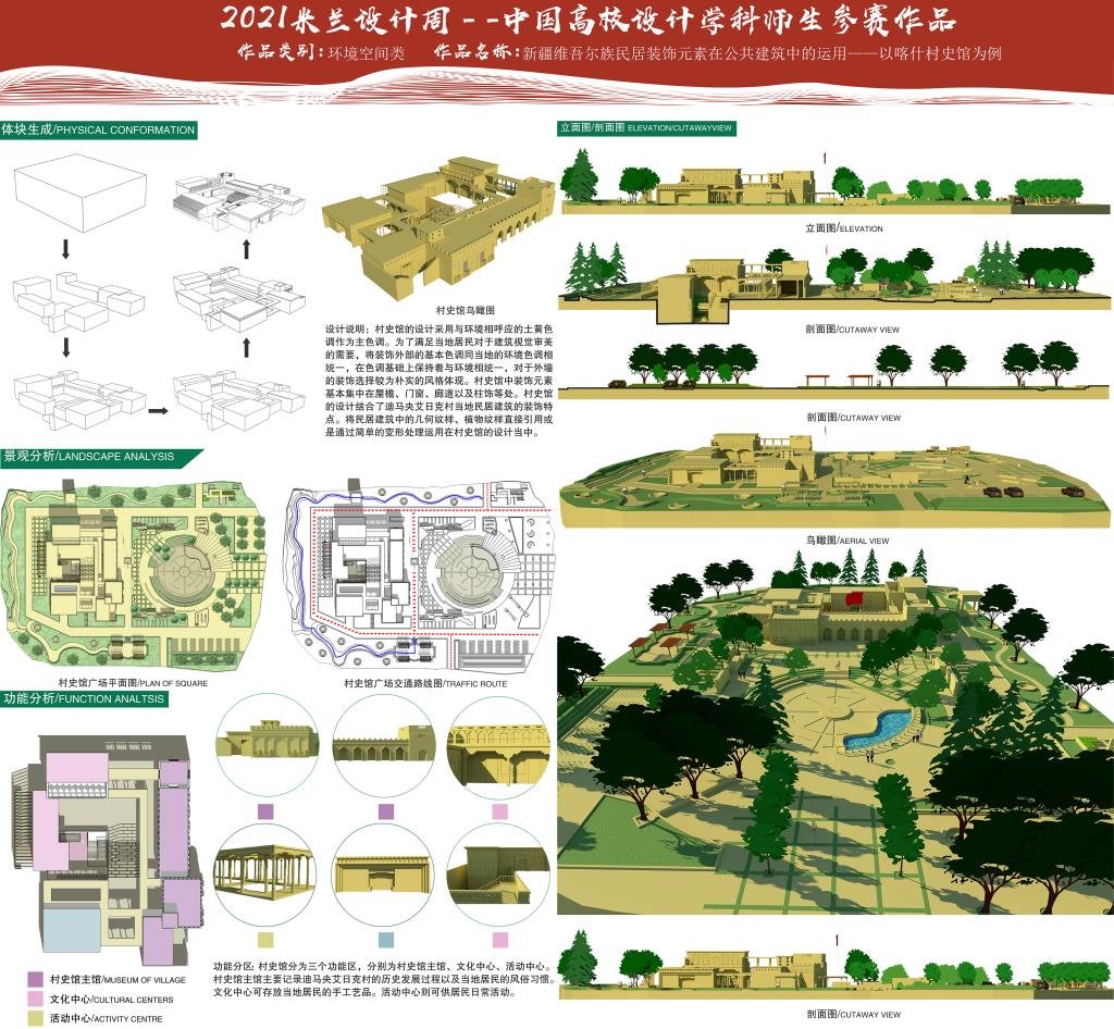 三等奖作品《新疆维吾尔族民居装饰元素在公共建筑中的运用——以喀什村史馆为例》(黄新玲)
