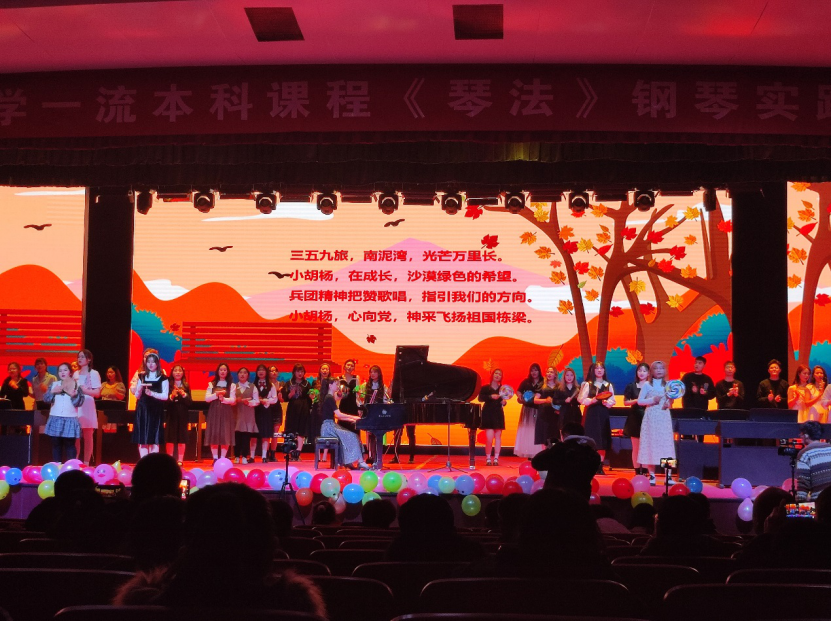 音乐会上的节目精彩纷呈,《我的中国心》、《龙的传人》、《我和我的祖国》表达了当代老员工的爱国主义情怀,四手联弹《听我说谢谢你》表达了对抗疫一线的医护人员、志愿者的由衷感谢,儿歌弹唱表演《小胡杨》表达了胡杨学子热爱祖国、热爱党、热爱兵团的坚定理想。情感的共鸣引得台下观众数次掌声雷动,绵延不绝。