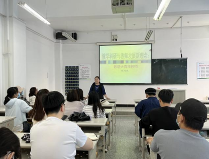 讲座伊始,张教授就“青年教师如何快速成长”提出了“三步走”方法,即第一步:尽快进行身份转换,融入集体,多向老教师学习,奠定教学基础,冷静应对困难,做好吃苦准备,并结合自身经验分享了备课方法,为各位老师提供了新的备课思路;第二步:教学、科研齐头并进。张教授指出,作为一名高校教师要牢记“教学是根本,科研是保证”。在科研中要以产出为导向、以员工为主体、持续深入改进。在教学中要掌握教学方法,做到“教学有法,教无定法”“教学效果保证教学质量”“注重效果、不追时髦”。她提到青年教师多学习教育理论和教学法,了解国家教育理念、政策法规,并且要有目标、有计划的听课,多钻研教学设计;第三步:水到渠成——事业有成。张教授表示想要事业有成,就必须要为人师表。作为一名人民教师要有一颗仁爱之心,爱自己的员工,并发现每个员工的优点和闪光点。要有坚定的理想信念和高尚的道德情操。同时要具备扎实的理论知识。