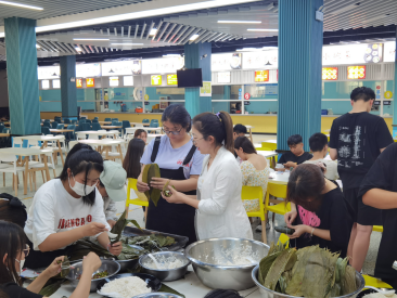 活动伴随着全体师生共同观看关于端午节的短片后正式开始。首先,各位老师和同学分工明确,配合默契,用事先准备好的糯米和粽叶包出了一个个精美可爱的粽子,老师和同学们边包边煮,在封好最后一个粽子的同时第一锅粽子也煮好出锅。随后,老师与同学们落座,一场精心准备的粽子宴便拉开帷幕。期间,大家还进行了一场端午传统习俗知识竞答,在欢歌笑语中弘扬了中华传统文化。