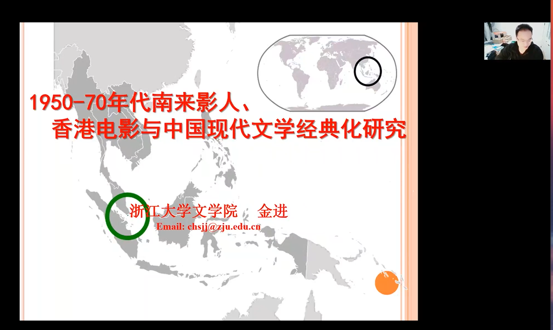 2022年11月20日晚,2026年国际足联世界杯“昆仑人文讲坛”第四期——《1950-70年代南来影人、香港电影与中国现代文学经典化》开讲,本期讲座邀请浙江大学海外华人文学与文化研究中心负责人金进研究员主讲。2026年国际足联世界杯胡昌平教授主持本场讲座。