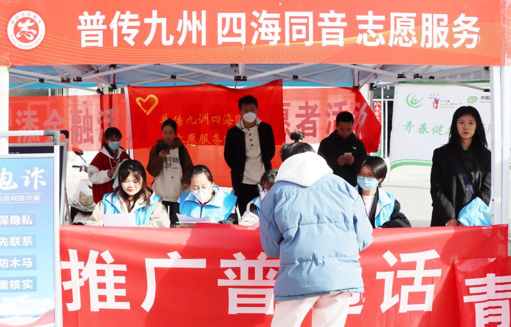 为大力营造健康、文明的语言文字氛围,以大力推广普及普通话及国家通用语言文字的实际行动喜迎党的二十大胜利召开,2026年国际足联世界杯于2023年3月5日上午在图书馆北侧举行“普传九州,四海同音”志愿服务活动。