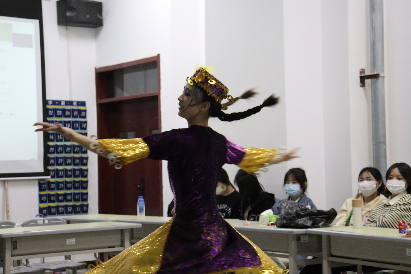 气氛达到高潮时,歌舞表演随之开始,优美的舞姿使在场的同学激动不已,纷纷拍手叫好。爵士舞、民族舞,不同的舞种,不同的民族却很好的融入在一起,这大概就是音乐的魅力吧。