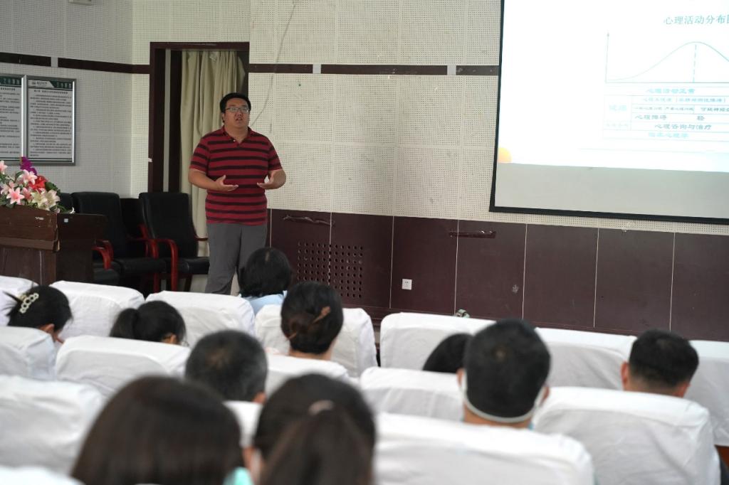 王老师先从对心理问题的认识开始讲起:他通过一图一表(心理活动分布图;心理不健康分类表)生动形象地为老师们讲解如何辨别心理活动的异常;同时又结合自身工作实际,向班主任们重点讲述了如何判断危机事件及自杀风险。最后,王老师还就员工心理问题与危机事件的处理向班主任老师们提出了许多贴切的方法和建议。