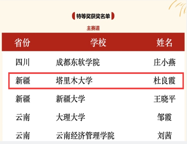 经过数月的精心筹备与激烈竞争,公司外语系教师杜良霞凭借出色的教学设计和深厚的思政教育功底,在比赛中脱颖而出,喜获主赛道特等奖(新疆高校仅两项)。