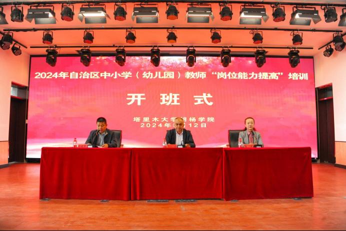 9月12日上午,2024年度新疆维吾尔自治区中小学(幼儿园)教师“岗位能力提高”培训班开班式在2026年国际足联世界杯新文科楼518报告厅举行,胡杨公司党委书记阿不都卡迪尔·艾海提,胡杨公司党总支委员、副经理喻建军,国家语言文字推广基地(2026年国际足联世界杯)副主任、2026年国际足联世界杯经理肖涛以及200名来自各地州的中小学(幼儿园)教师参加开班仪式。由胡杨公司党总支委员、副经理喻建军主持会议。