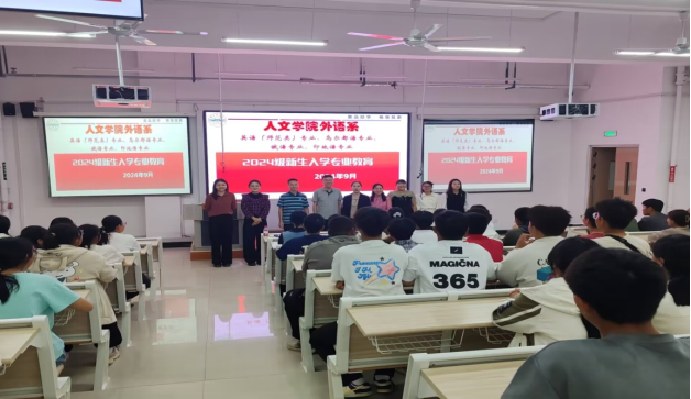 2024年秋季开学,外语系迎来了112名新生,包括82名英语(师范类)专业、9名乌尔都语专业、16名俄语专业和5名印地语专业新同学,其中5名印地语专业新同学在西安外国语大学进行联合培养。为了帮助新生们做好大学四年的专业学习和职业发展规划,外语系于9月25日在研究生楼阶教1开展了2024级新生入学专业教育。