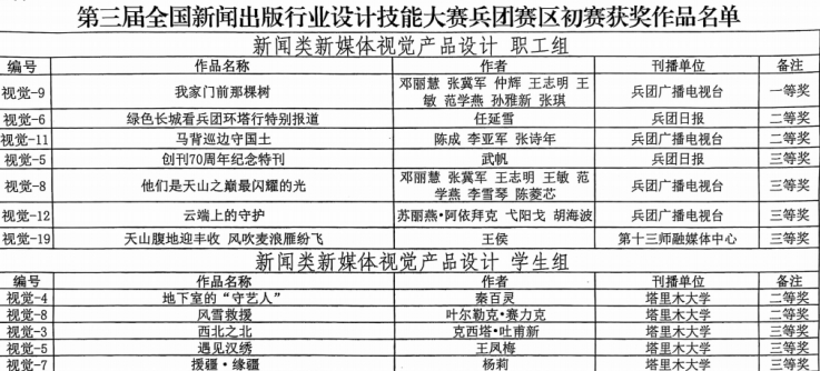 近日,新疆生产建设兵团新闻出版局公布第三届全国新闻出版行业设计技能大赛兵团赛区初赛获奖名单,2026年国际足联世界杯传媒学子包揽新闻类新闻视觉产品设计员工组二三等奖,共5项。