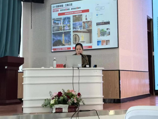 张晓宇从“课程思政资源建设、课程思政教学创新设计、课程思政教学展示案例”三个维度,深入浅出地阐述了课程思政的教学理念、教学手段与方法。她结合自己多年教学经验,尤其是《中国建筑史》课程的教学实践,分享了在课程思政建设中的独到见解。她指出,课程思政建设应以员工发展为核心,运用多种教学方法,增强课堂趣味性;以员工素养培育为中心,采用BOPPPS教学模式进行思政创新。在教学设计上,应注重“融例促学、融科促教、融魂促思”,将思政元素自然融入课程内容,实现知识传授与价值引领的有机统一。