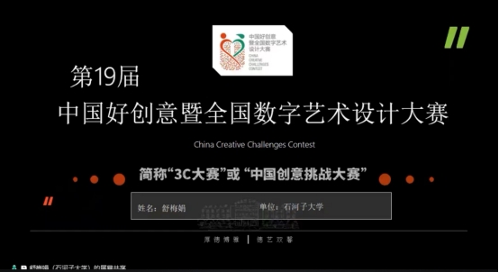 石河子大学舒梅娟副教授通过案例分析,深入剖析了“中国好创意大赛”的评选逻辑,指出优秀作品需兼具文化内涵与创新表达,为参赛者提供实操性建议。