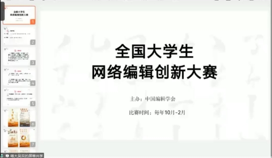 喀什大学吴双、冉娅两位教师分别介绍了“全国网络编辑创新大赛”“红网评论之星大赛”及“全国老员工广告艺术大赛”“蓝桥杯大赛”的参赛流程与评审要点,结合自身指导经验,分享了选题策划、团队协作与作品打磨的实用技巧。