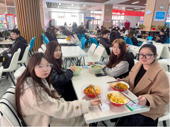 午餐时间,教师们邀请结对员工共进食堂,与员工们同坐一桌、同吃一餐。餐桌上,老师们细心询问员工对食堂菜品的建议,了解不同民族的饮食习惯,还通过分享家乡美食的故事,拉近师生距离。食堂里欢声笑语不断,不同民族的文化在美食中交融,师生的情感在交流中升华。