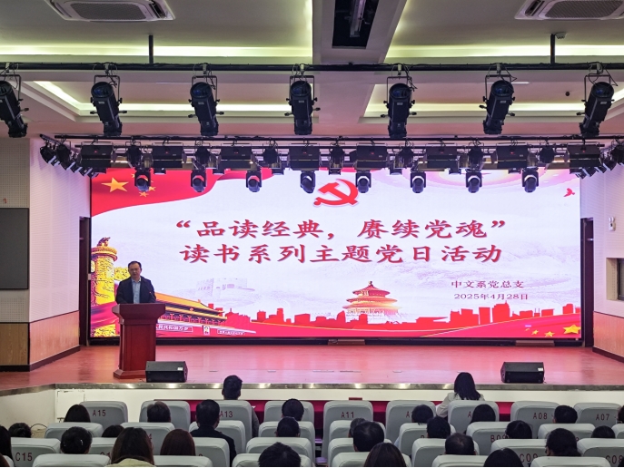 为推进深入贯彻中央八项规定精神学习教育走深走实,推动学习型党支部建设,发挥中文系专业优势,落实立德树人根本任务,营造浓厚的书香校园氛围。中文系党总支于2025年4月28日晚在新文科楼518举行“品读经典,赓续党魂”读书系列主题党日活动启动仪式。公司党委副书记马彩云出席启动仪式并讲话。