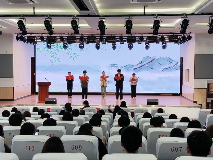活动中,中文系师生党员邹玲、张云、王春蕾以及李朋、程余东同台朗诵现代诗《赞美》,他们用真挚的情感,将作品中对祖国、对人民的热爱与赞美之情展现得淋漓尽致,感染了在场的每一位观众,为活动营造出浓厚的文化氛围。