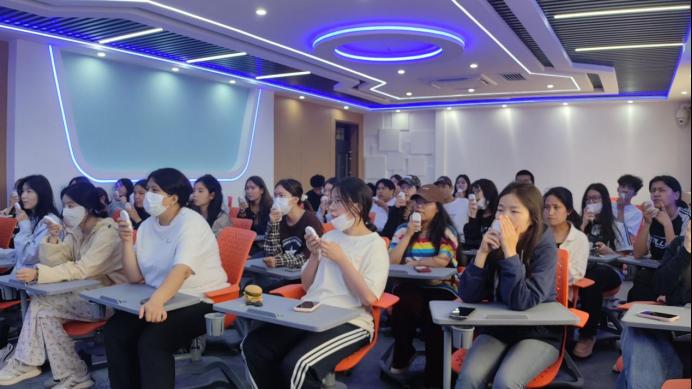 体验活动中,省级普通话测试员任园园老师向同学们介绍该平台功能,并引导同学们使用语音答题器展开体验。体验内容覆盖了日常教学相关微课、声母韵母声调、词汇语法、专项训练、考试技巧、模拟测试等智能纠错的学习和训练,通过课堂互动助手展开全班下发、随机抽选、互动抢答、小组PK等练习方式,提高了同学们对课堂教学的兴趣、积极性和参与度。平台还可根据员工练习内容智能识别员工水平、推送个性化练习内容,赋能课前、课中和课后的有效衔接,完善普通话教员工态。体验后,汉语言专业2022级阿勒斯同学开心地分享道:“太喜欢这种教学方式了!以前学普通话,就是跟着老师一遍一遍地读,枯燥又容易走神。这个智慧课堂特别强大,分析我的发音,哪里不对马上就能知道,就像有个私人教练在身边。还有课堂互动环节,紧张又刺激,我完全沉浸其中,学习热情一下子就被点燃了。”