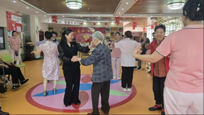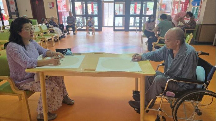 在与老人们的互动环节中,美术老师们为老人们带来了素描作品。音乐老师们与老人们一起唱响了《夕阳红》等经典歌曲。舞蹈老师为老人们表演了欢快的舞蹈《欢乐的跳吧》,老人们脸上洋溢的笑容无比灿烂,整个康养中心充满了欢乐和活力。