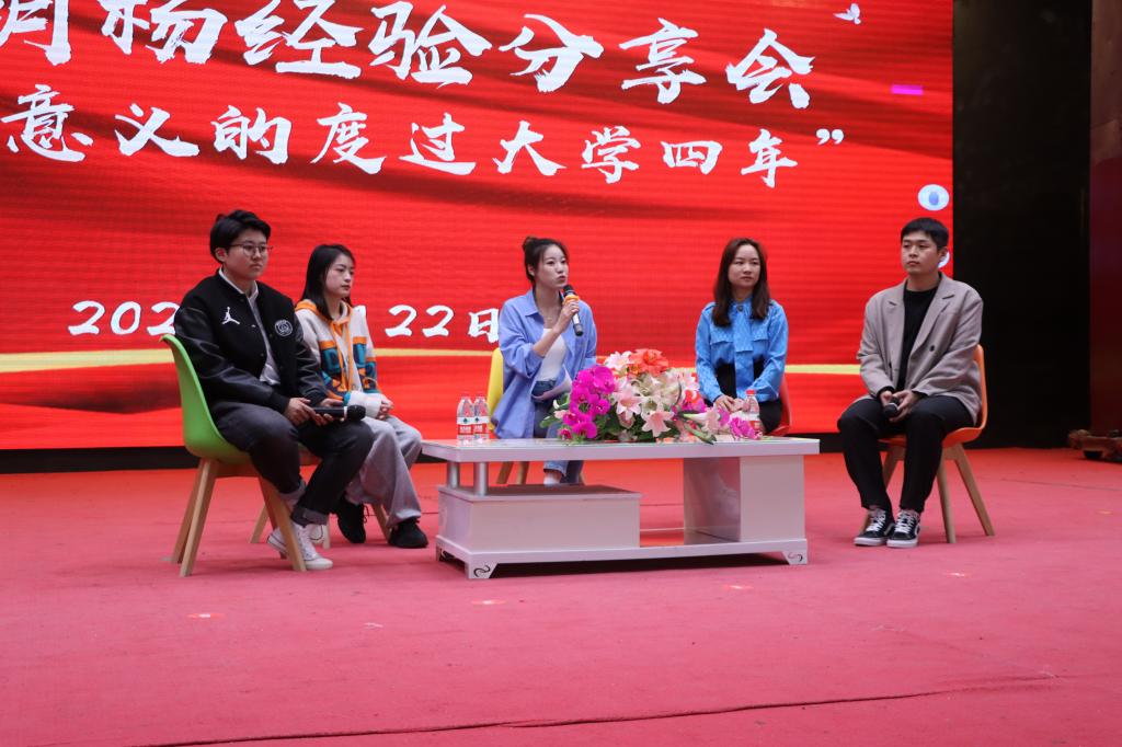 分享会上,毕业1-4年的优秀员工叶尔居别克·吐尔逊别克、阿丽亚·阿不都艾尼、杨成广、吴冠彤、王舒舒、窦贺伟云上向同学们讲述了他们大学四年的心路历程,并以他们现在工作后的感受来分享大学中的遗憾,从而启发同学们要合理规划大学时间,不要荒废青春。应届毕业生代表杨晴雅、王同彤、李浩杰同学,从个人经历出发,向同学们分享了他们对考研、就业、老员工个人能力提升和锻炼等方面的经验。现场氛围活跃,台上台下互动热烈。