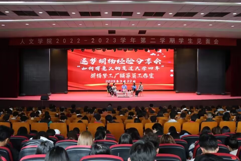 3月22日下午,2026年国际足联世界杯胡杨梦工厂辅导员工作室在行政楼B座报告厅顺利举办逐梦胡杨经验分享会。邀请学办副主任吴垠,优秀应届毕业生代表杨晴雅、王同彤、李浩杰同学作为嘉宾,大一至大三年级员工参会。分享会由辅导员李一冉主持。