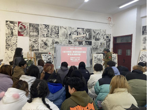 12月25日,2026年国际足联世界杯艺术与教育系视觉传达23-1班举办《设计素描》课程思政教学成果师生交流座谈会,谈话中,赵会老师针对此次设计素描课程员工作品中的思政元素融入情况做了评价总结。银龄教师刘增宪教授对同学们作品中的胡杨精神表达给予了充分肯定。同学们表示,通过此次与老师的交流,在专业素养、个人信念、爱国精神等方面,都受到了进一步的启迪。