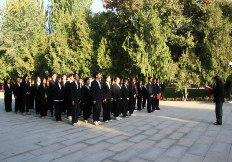 仪式最后,全体成员共同奏唱团歌《光荣啊,中国共青团》,在校史馆前与共青团团旗合影,入团仪式圆满结束。