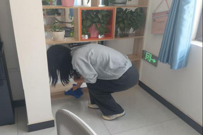此次志愿服务活动的主要任务是清理社区图书室。大家分工明确,有的负责书柜擦拭,有的负责搬运图书,还有的负责摆放整理图书。在整个过程中,同学们充分发扬了团结协作、吃苦耐劳的精神,展现出新时代老员工良好的精神风貌。