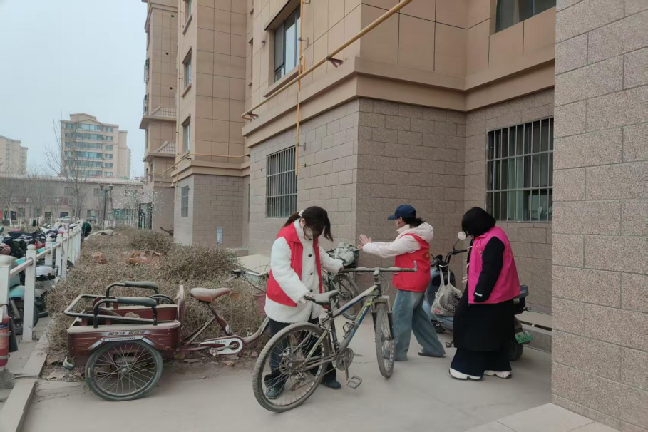 活动现场,志愿者们合理分组、分工协作,手持清洁工具对社区主干道开展地毯式清理,细致扫除路面垃圾、杂物。针对社区内被踩踏的绿化带,志愿者们做好补种提醒标识,并对绿化带围挡进行维护,同时深入绿化带清理枯枝败叶,还原绿植生长整洁环境。此外,志愿者们还将辖区内乱停乱放的共享单车逐一搬运至指定停放区域,摆放得整齐有序,规范社区公共空间秩序。