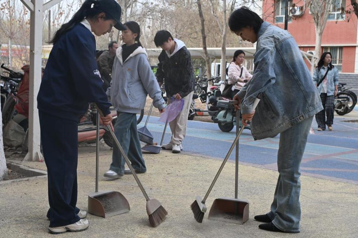 活动现场,员工党员志愿者们分工协作、干劲十足,以饱满的热情投入志愿服务。大家各司其职,有的认真规范摆放宿舍楼前的自行车、电动车,让车辆停放整齐划一;有的细致擦拭宿舍一楼大厅的门窗、桌椅及人脸识别闸机,细致清理每一处卫生死角;还有的深入草坪区域,认真捡拾烟头、白色塑料垃圾等杂物,用双手为校园环境“焕新颜”。整个志愿服务过程中,志愿者们齐心协力、高效配合,成为校园里一道亮丽的风景线。