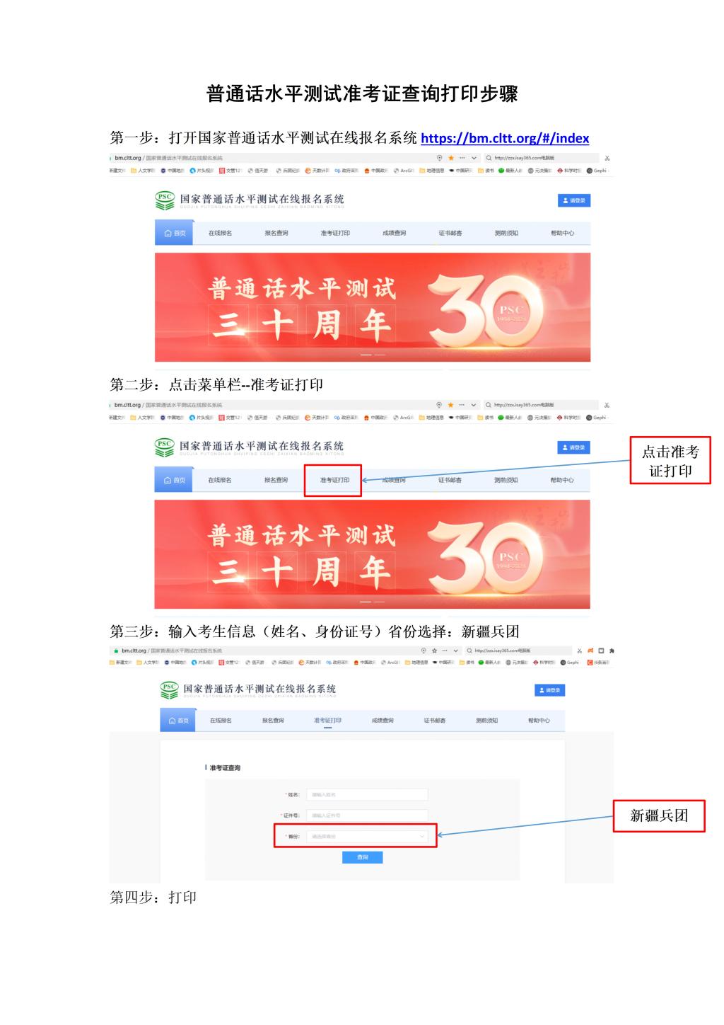 附件四:普通话水平测试准考证查询打印步骤