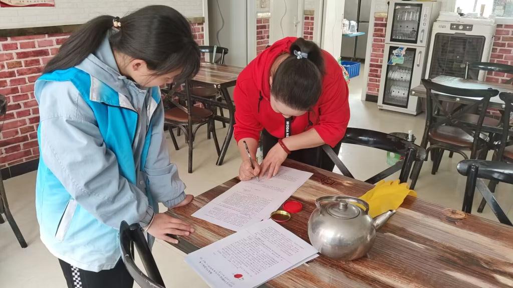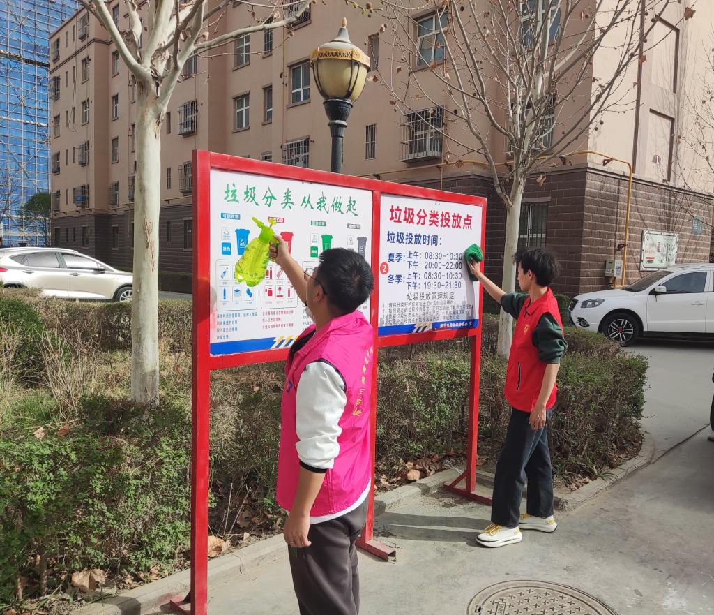 卫生清理结束后,同学们对小区内破损的公益广告、文明提示牌和宣传栏进行更换、擦拭,配合社区定制了便民公告栏,让文明创建宣传标语随处可见,让文明城市创建宣传融入每个市民的日常生活中。