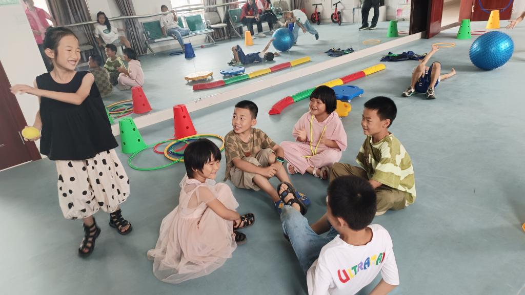 当日下午,团队老师带领3-6岁孩子进行了感统教具的游戏活动,为发掘幼儿的身体潜能,训练幼儿的视觉、触觉等,助力幼儿身心健康发展。在此过程中,感统教具对于运动协调能力较差以及运动不协调的儿童效果非常显著。