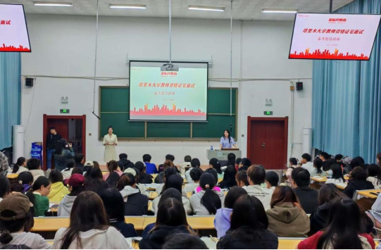 活动特邀了某教育机构具有丰富教团队格培训经验的项老师进行现场讲座。会中,项老师从考试政策解读、考试大纲分析、备考策略制定等方面进行了深入浅出的讲解,使同学们对考试有了更加清晰的认识。同时还结合历年真题,详细解析了各类题型的解题技巧与应试策略,为同学们提供了宝贵的备考建议。