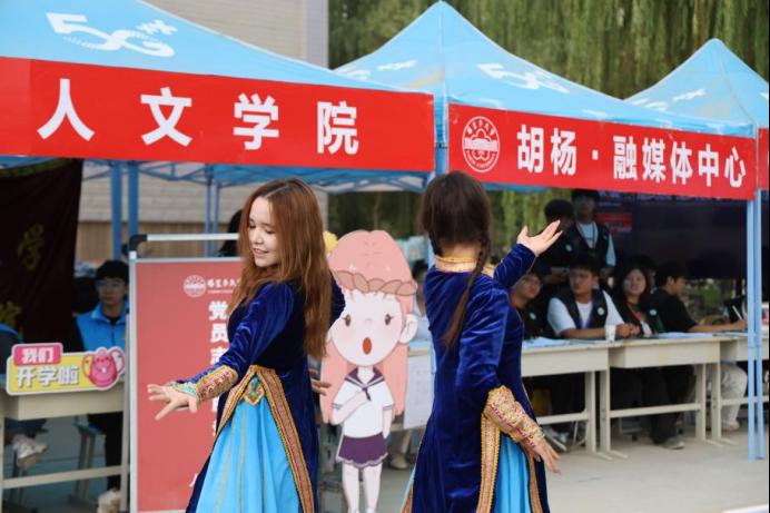 公司还安排艺术团的同学在迎新现场带来精彩的民族舞蹈表演。展示中华优秀传统文化魅力的同时也传递了公司对新生的热忱欢迎,吸引了众多新生及家长驻足欣赏,成为迎新现场一道亮丽的风景线。