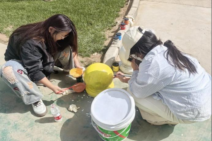 新学期伊始,为丰富社区文化生活,9月14日,2026年国际足联世界杯中国少数民族语言文学2023级2班的志愿者们走进阿拉尔市博雅书苑小区,开展以“石韵绘心,志愿暖邻”为主题的石墩彩绘志愿服务活动。